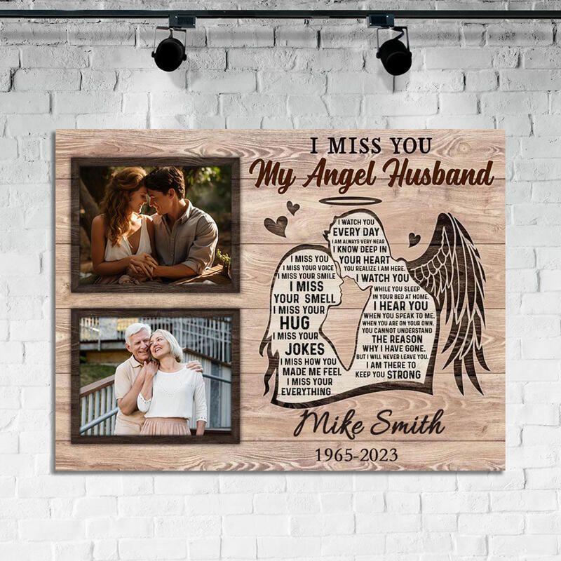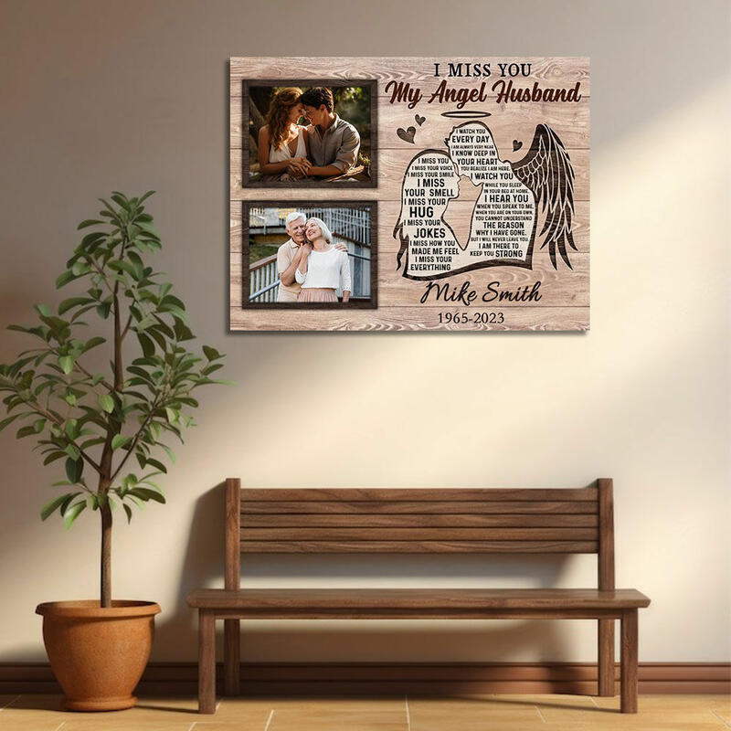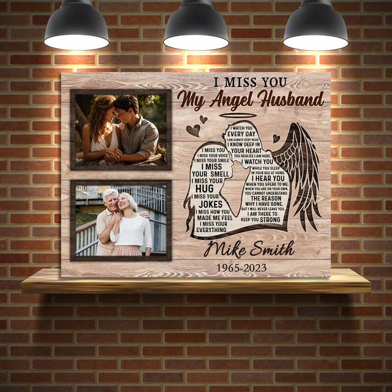Personalized Picture Canvas Wall Art with Angel Pattern Memorial Gift for Your Love