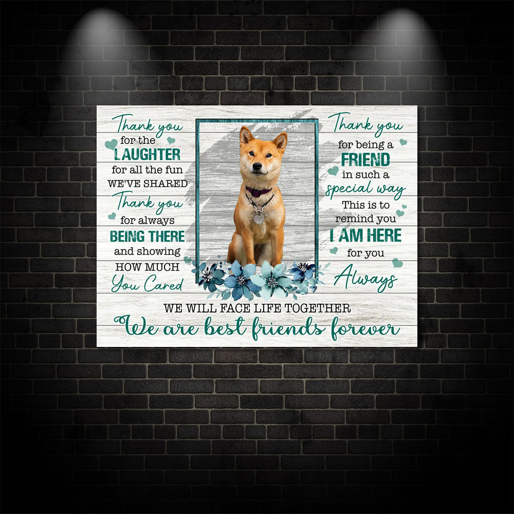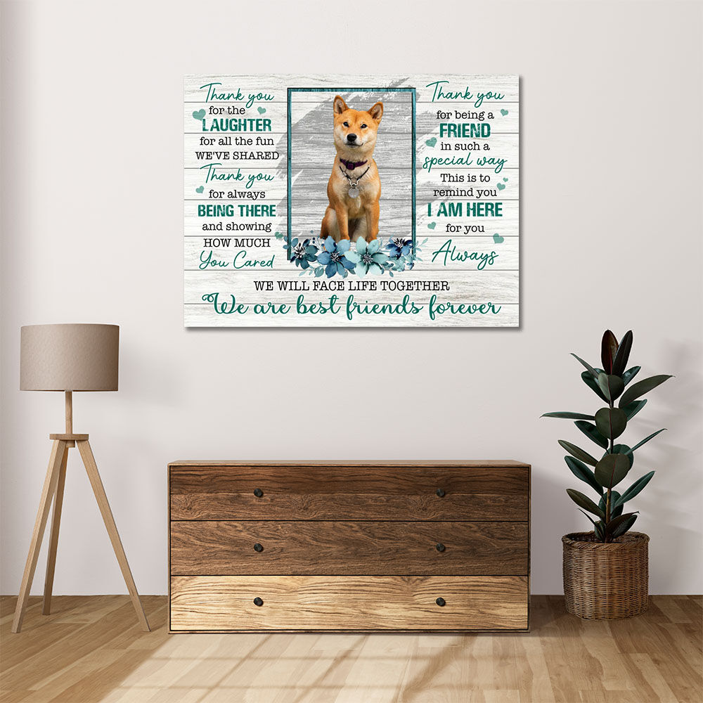 Personalized Picture Canvas Wall Art with Blue Flowers Pattern Simple Gift for Pet Lover