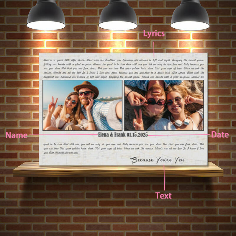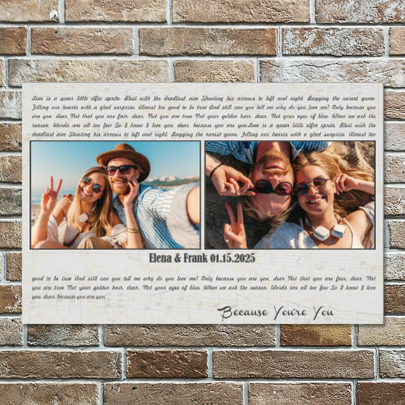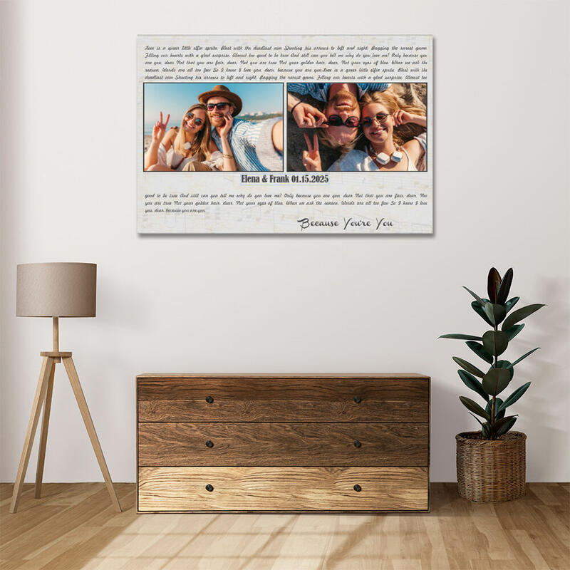 Personalized Picture Canvas Wall Art with Custom Lyrics Creative Gift for Couples