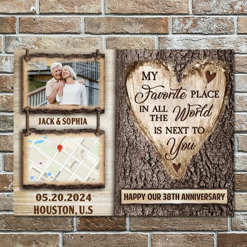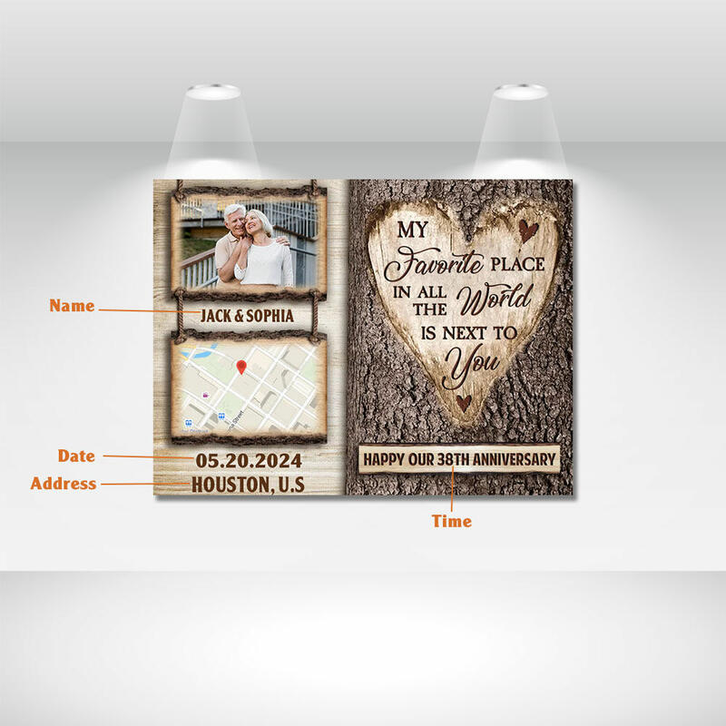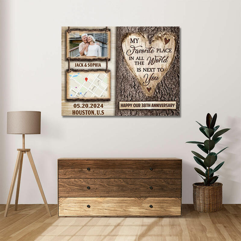 Personalized Picture Canvas Wall Art with Custom Map Creative Gift for Couples