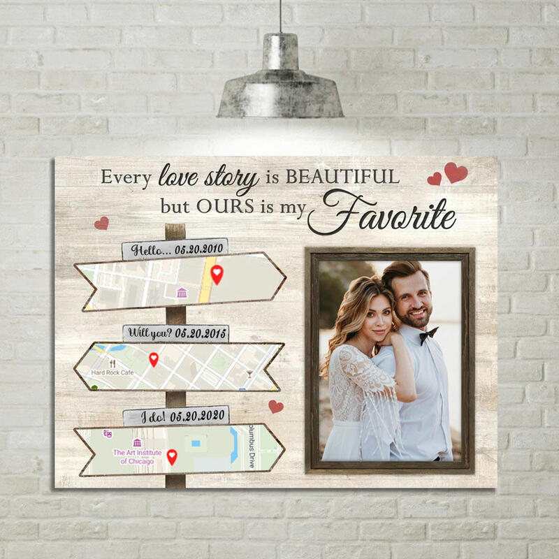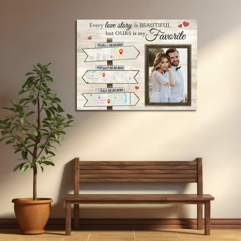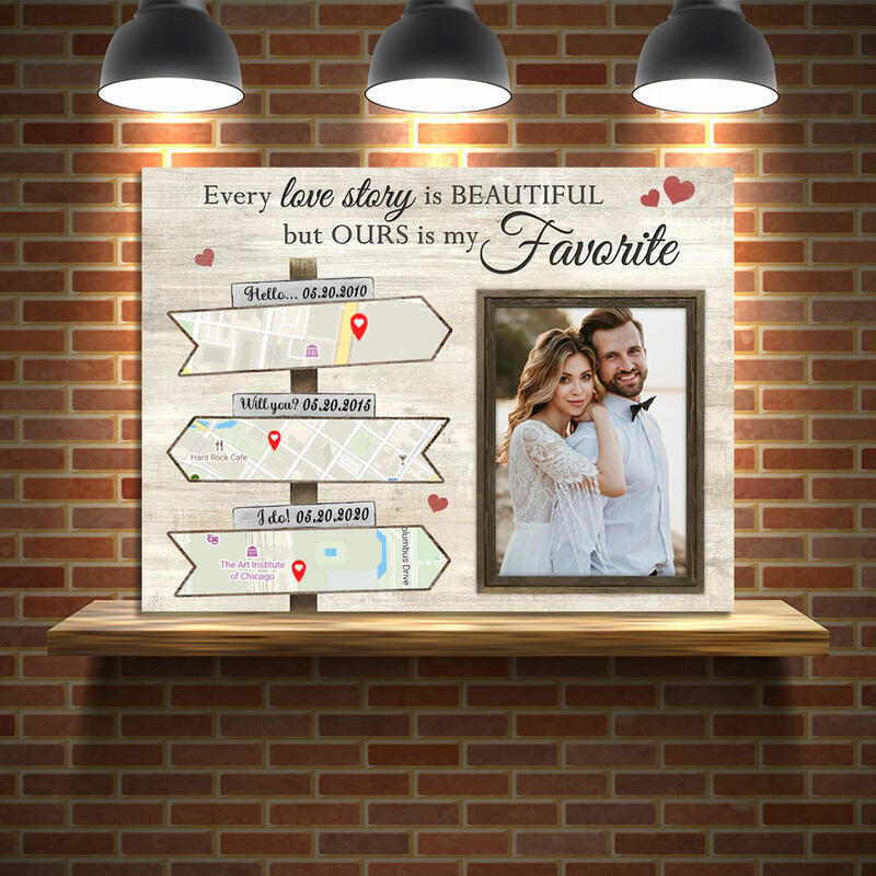 Personalized Picture Canvas Wall Art with Custom Map Romantic Gift for Couple "Ours Is My Favourite"