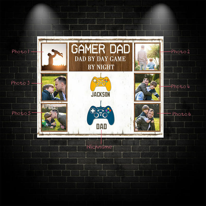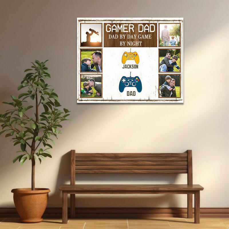Personalized Picture Canvas Wall Art with Custom Name Interesting Present for Gamer Dad