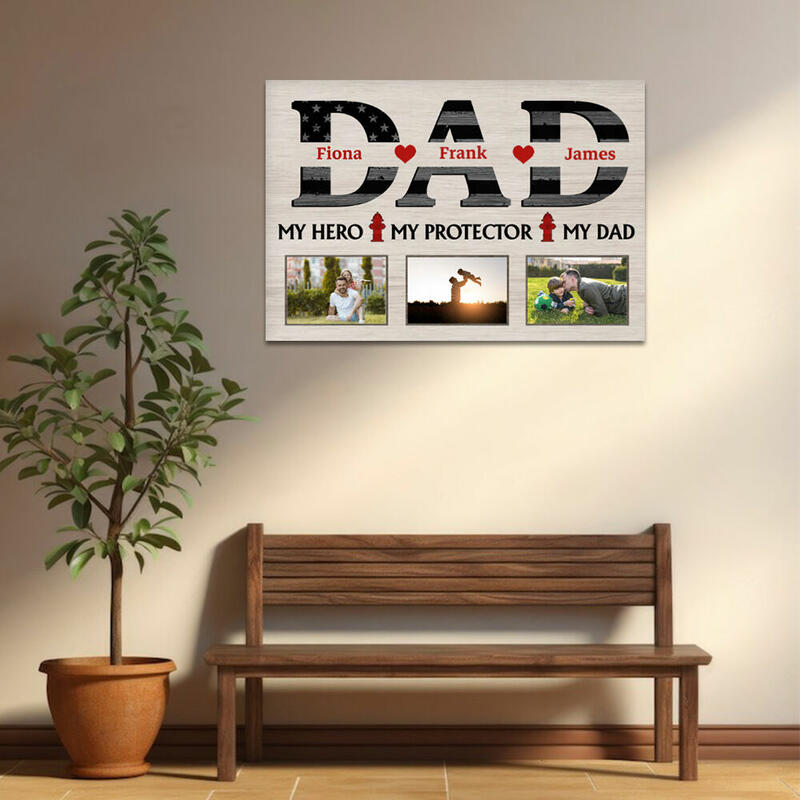 Personalized Picture Canvas Wall Art with Fire Hydrant Pattern Creative Gift for Dad