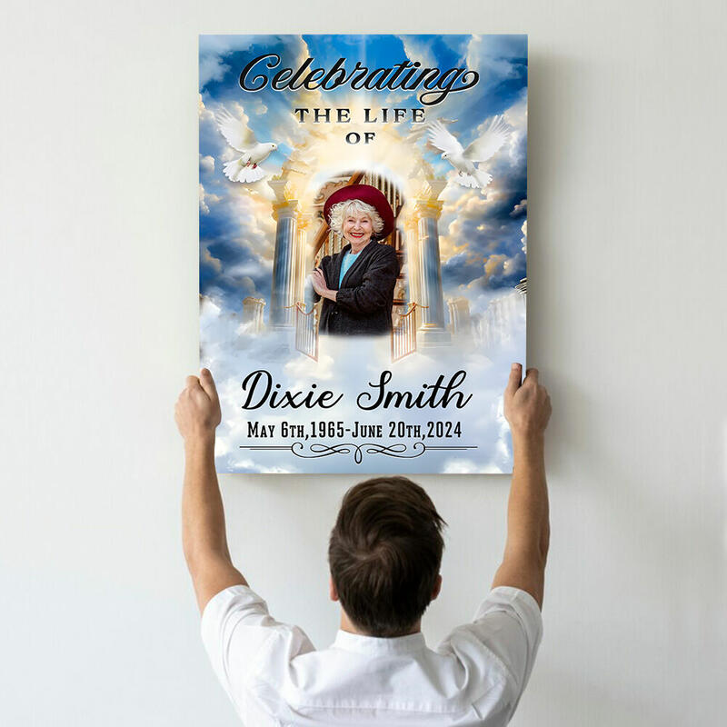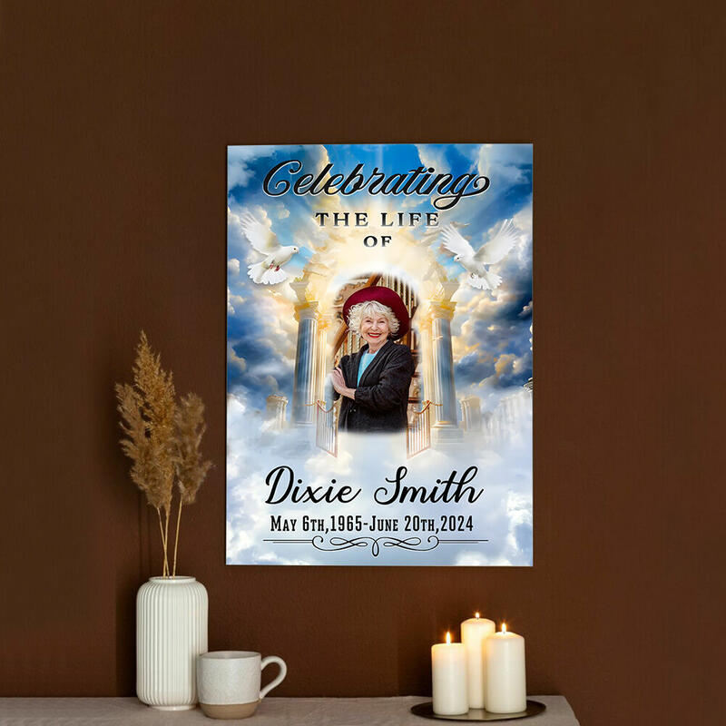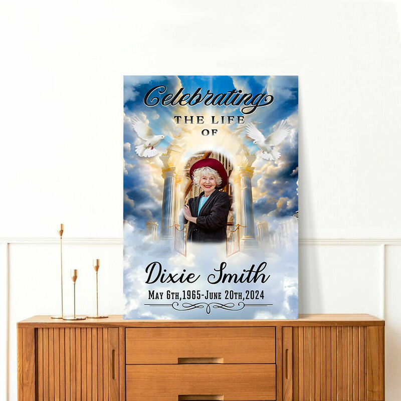 Personalized Picture Canvas Wall Art with Heaven's Gate Pattern Memorial Present for Family