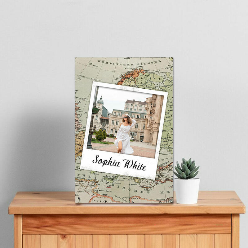 Personalized Picture Canvas Wall Art with Map Background Creative Gift for Friend
