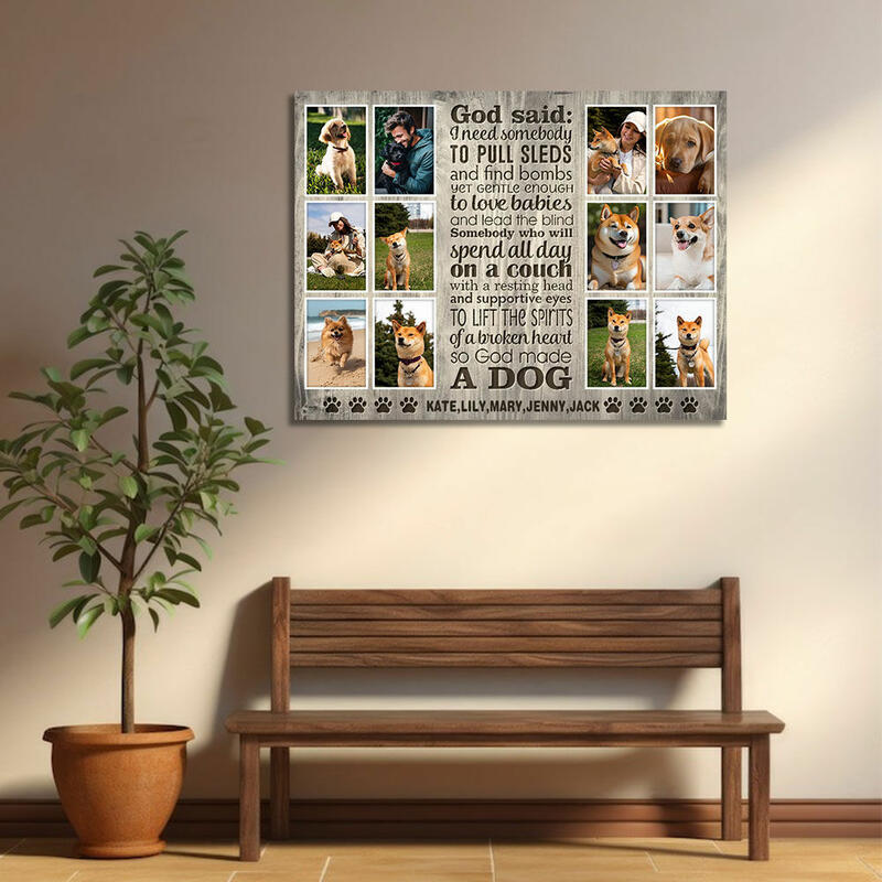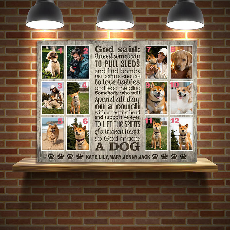 Personalized Picture Canvas Wall Art with Paw Print Pattern Lovely Present for Pet Lover "God Said"