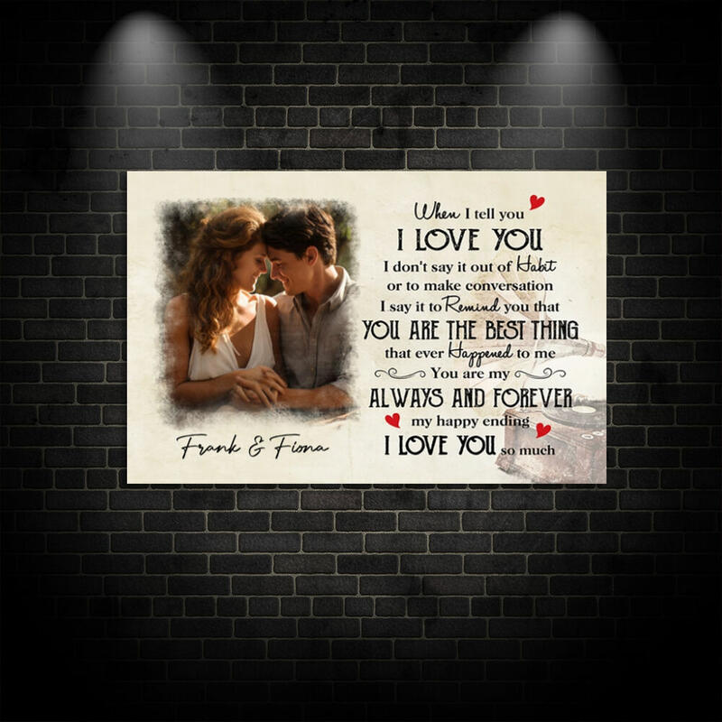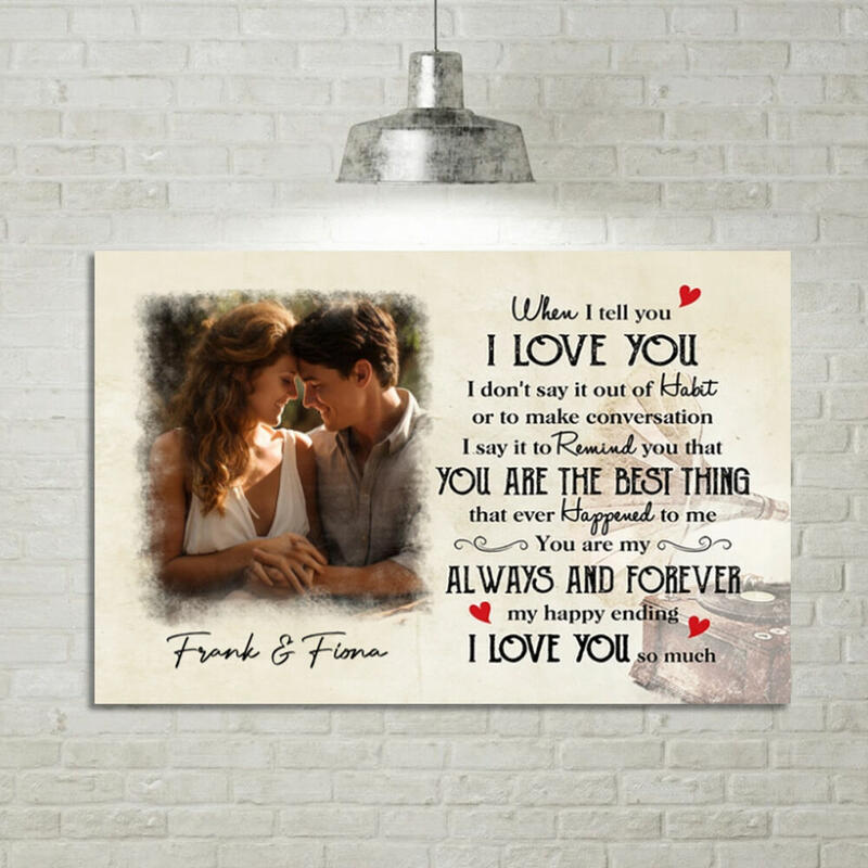 Personalized Picture Canvas Wall Art with Phonograph Pattern Retro Gift for Couples