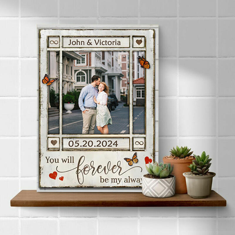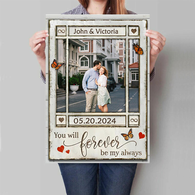 Personalized Picture Canvas Wall Art with Red Butterflies Beautiful Gift for Couples