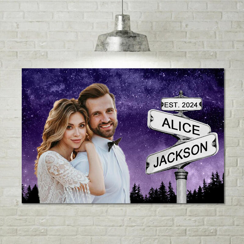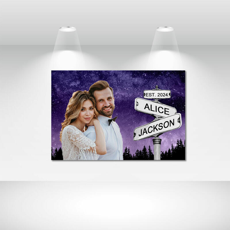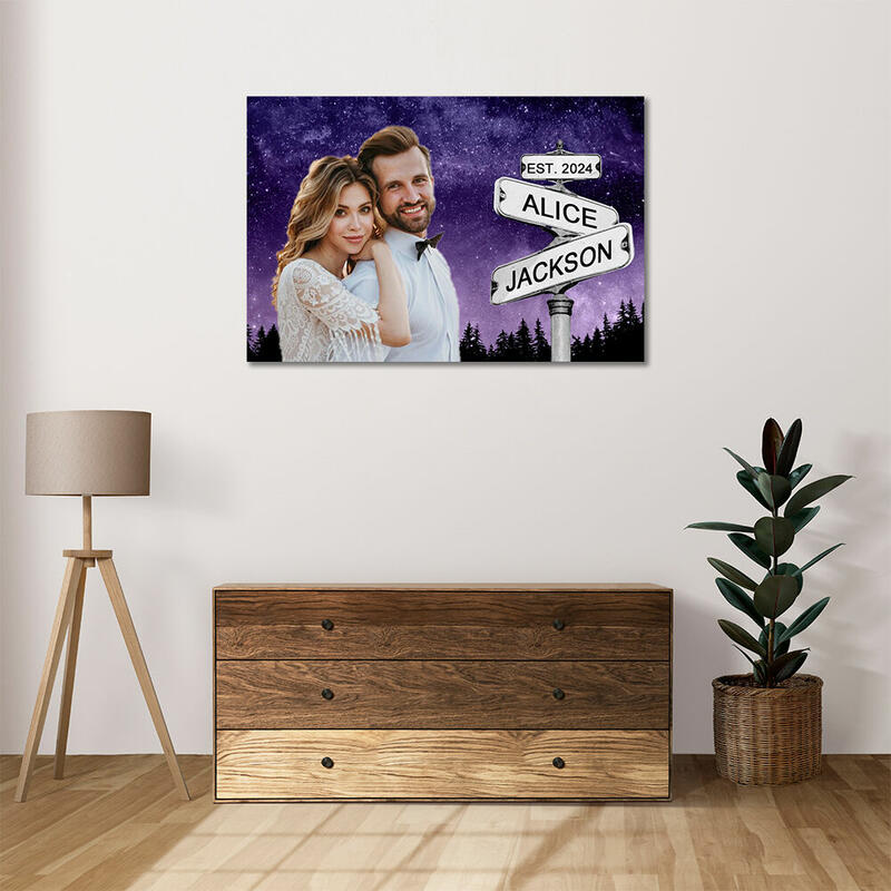 Personalized Picture Canvas Wall Art with Street Sign And Night Sky Pattern Beautiful Gift for Couples