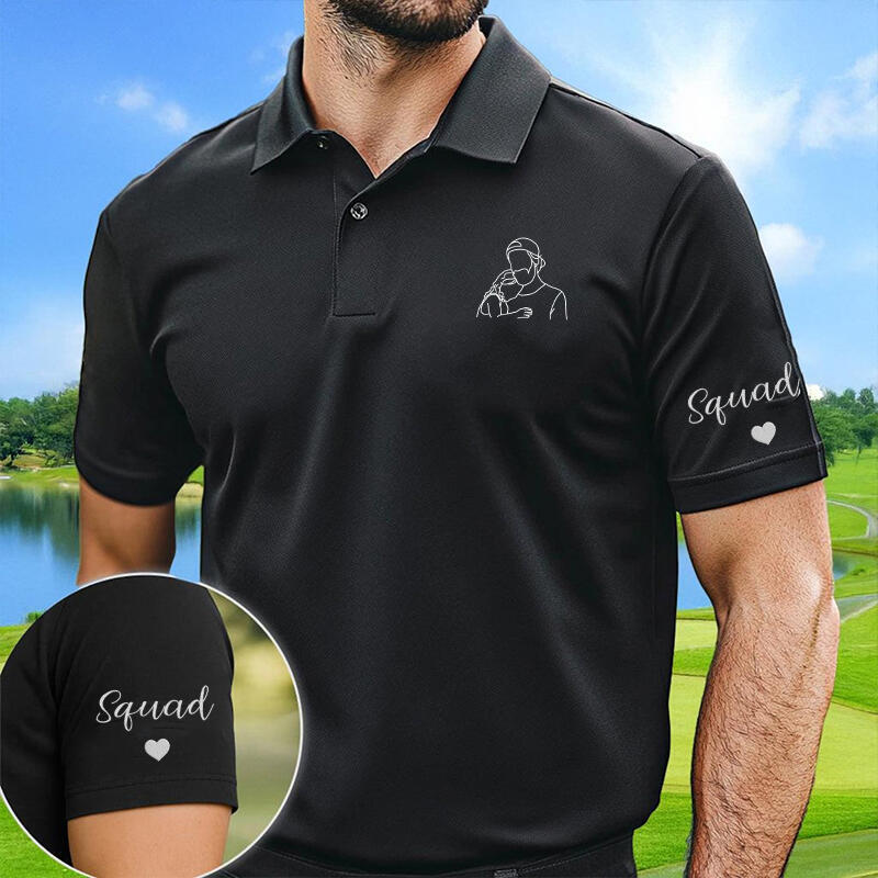 Personalized Picture Embroidered Polo Shirt with Heart Pattern Best Present for Family