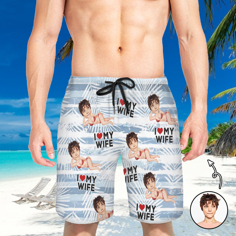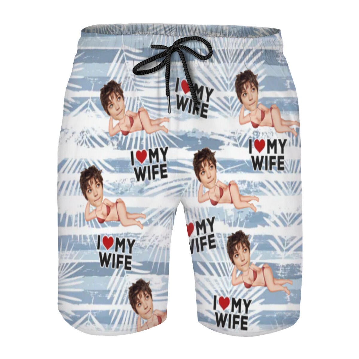Personalized Picture Men's Beach Shorts Best Gift for Husband "I Love My Wife"