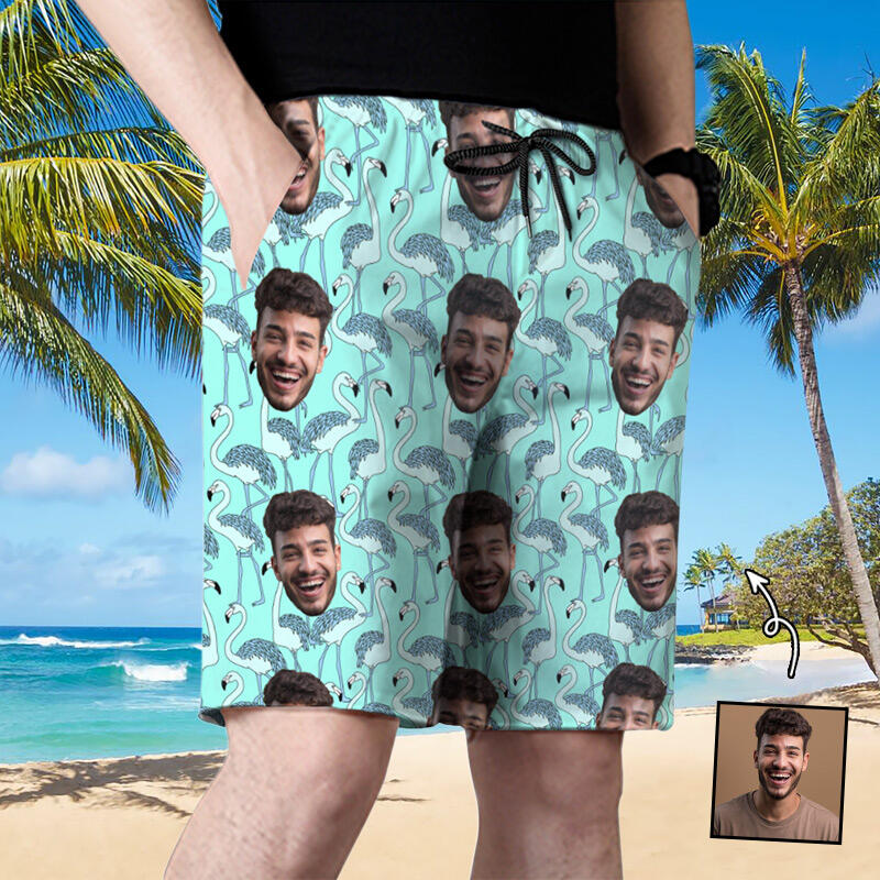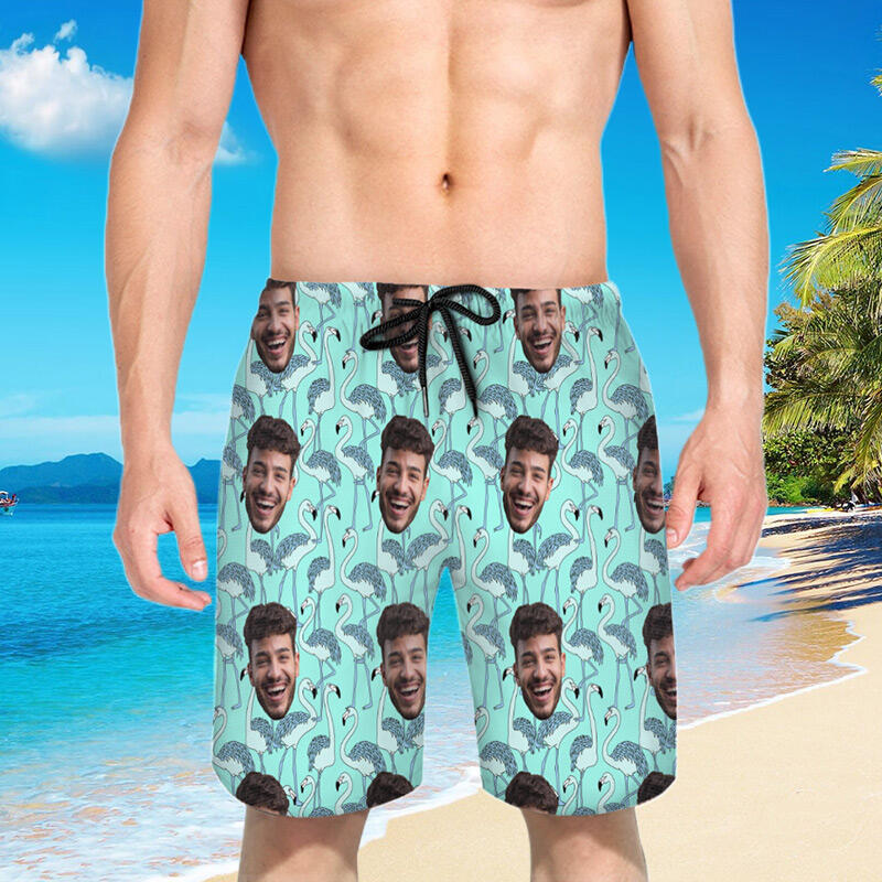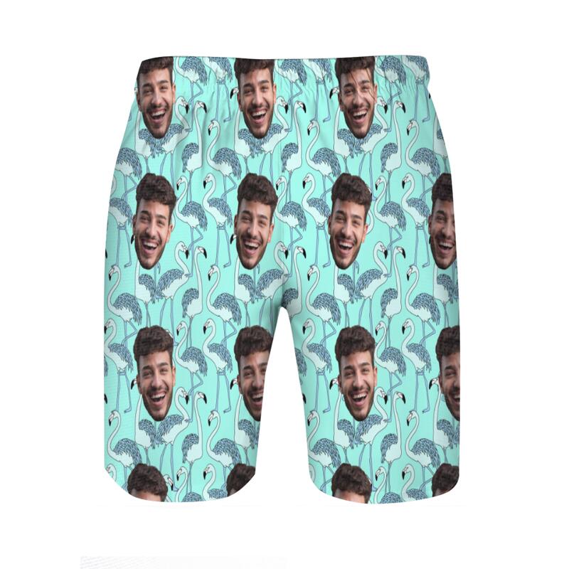 Personalized Picture Men's Beach Shorts Unique Flamingo Pattern Funny Gift for Brother
