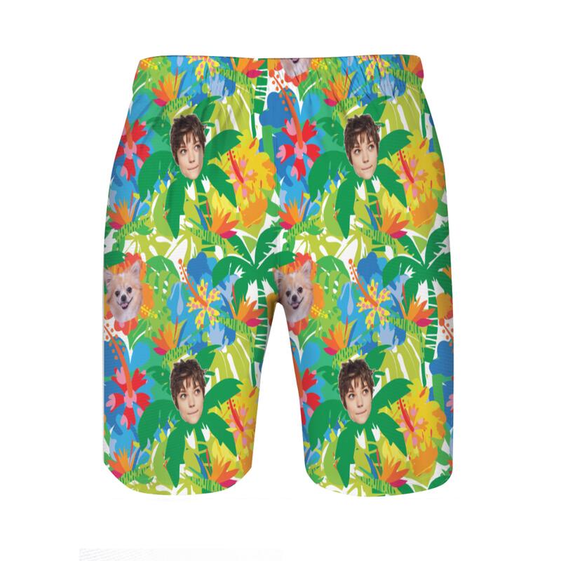 Personalized Picture Men's Beach Shorts with Coconut Tree Pattern Colorful Gift for Family