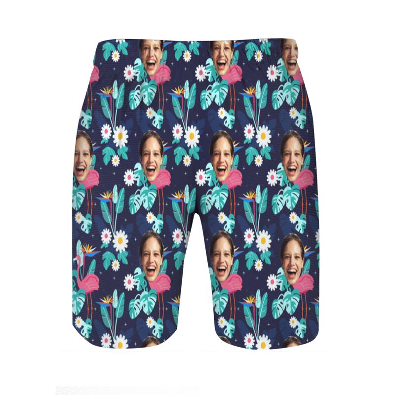 Personalized Picture Men's Beach Shorts with Daisy Pattern Wonderful Gift for Brother