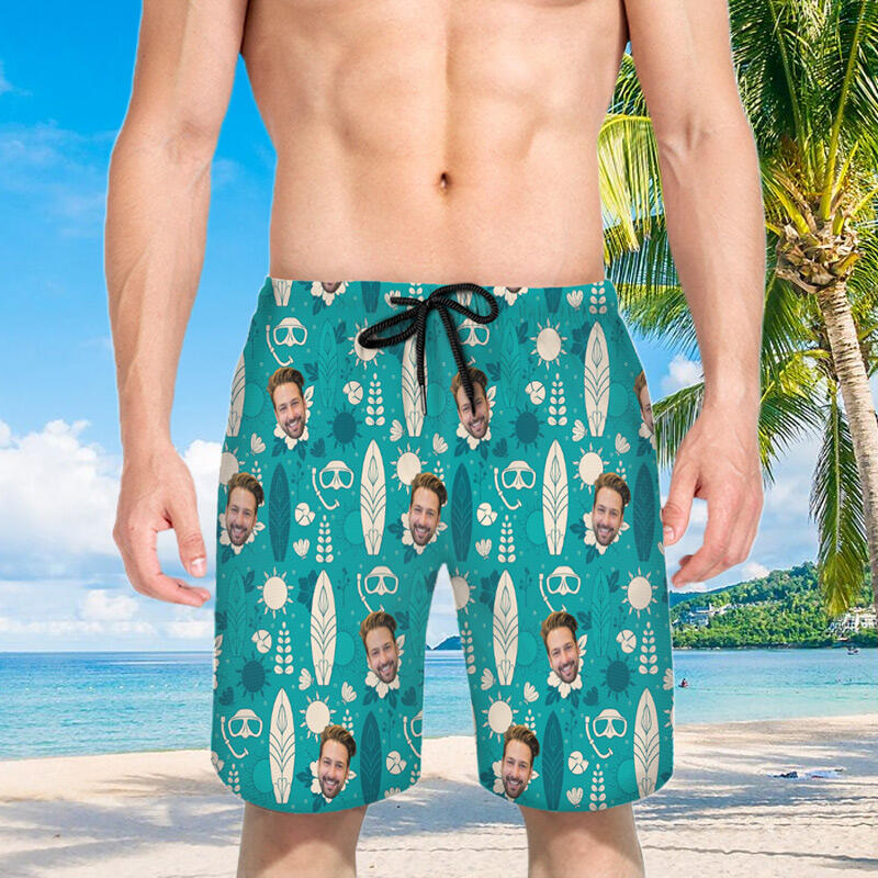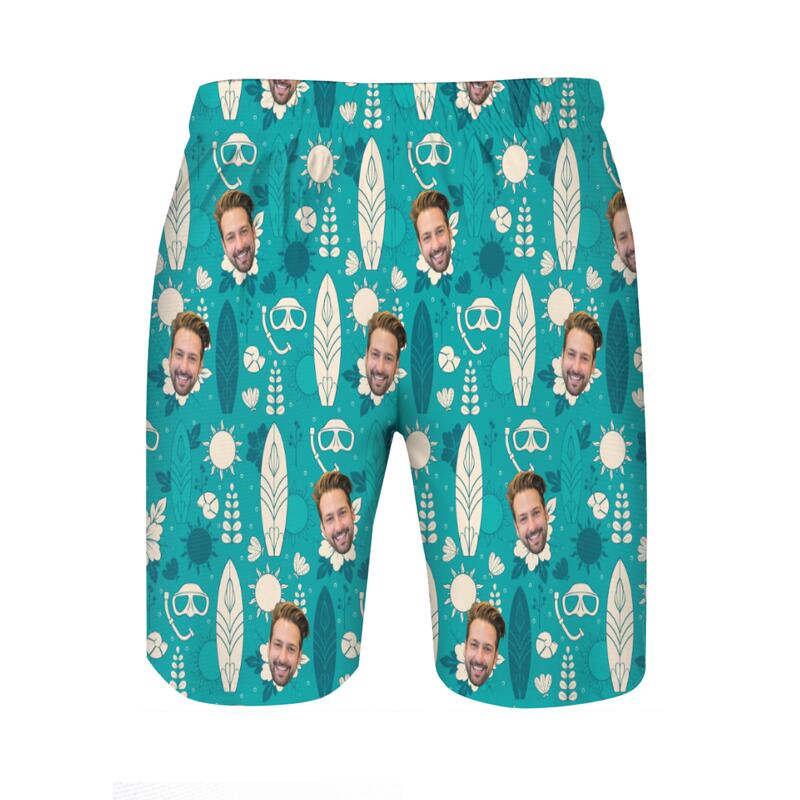 Personalized Picture Men's Beach Shorts with Diving Equipment Pattern Best Gift for Friends