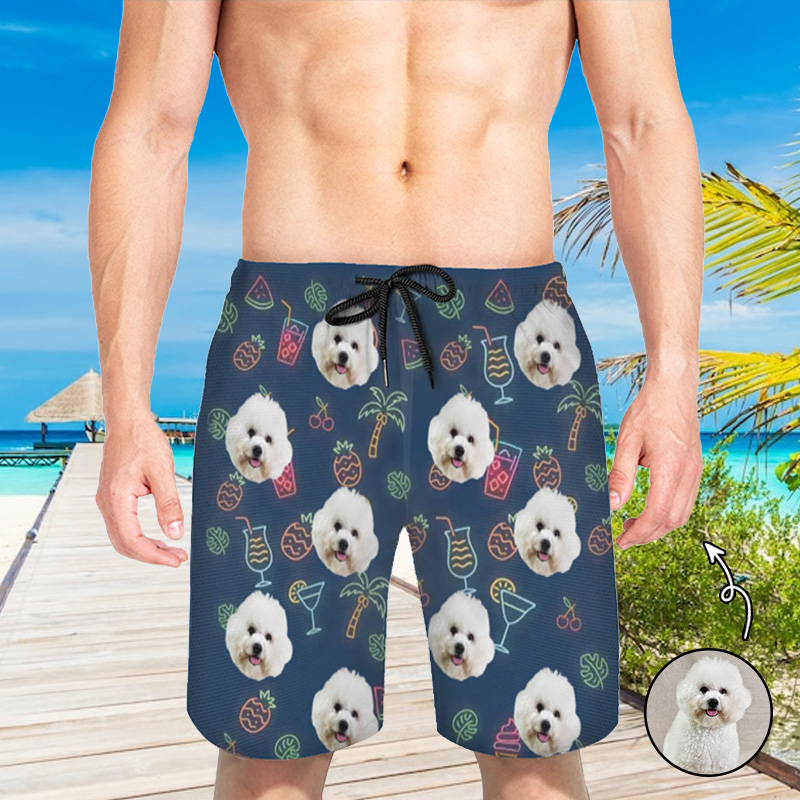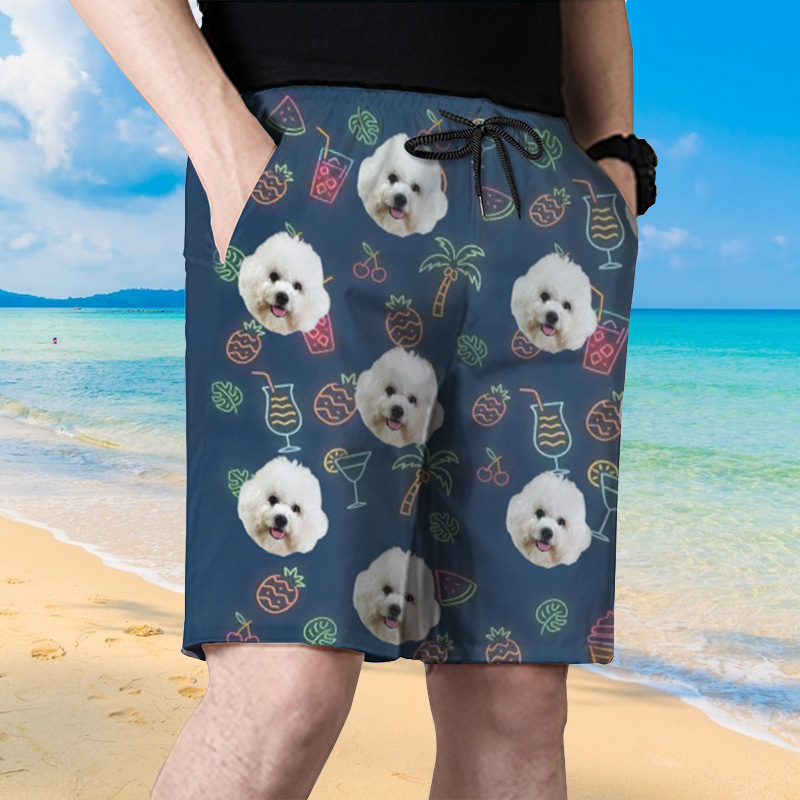 Personalized Picture Men's Beach Shorts with Drink Pattern Trendy Gift for Friends