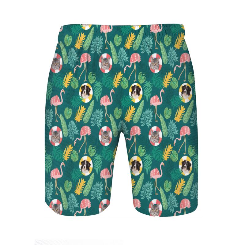 Personalized Picture Men's Beach Shorts with Flamingo Pattern Cool Gift for Family