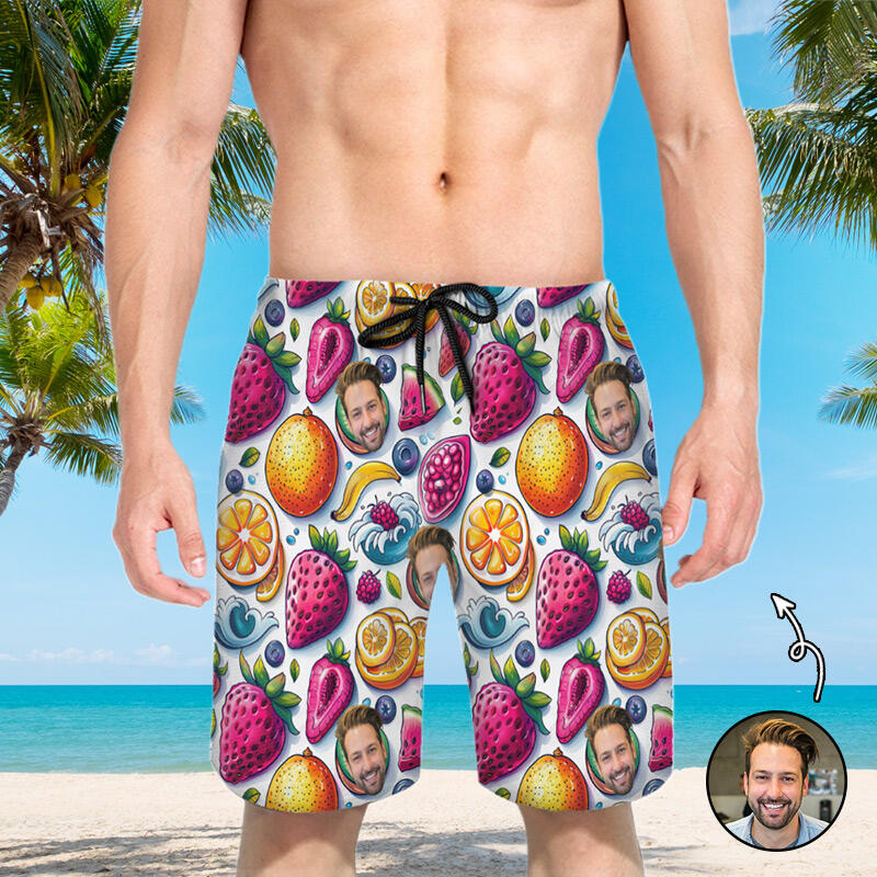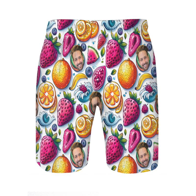 Personalized Picture Men's Beach Shorts with Fruits Pattern Interesting Present for Papa
