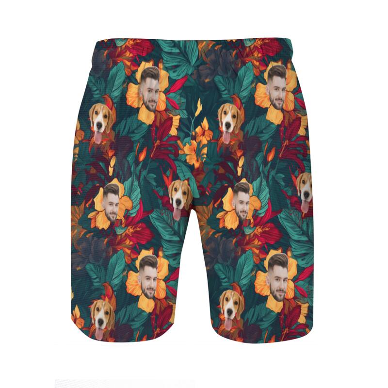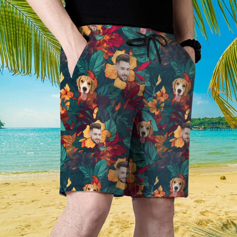 Personalized Picture Men's Beach Shorts with Orange Flowers Pattern Beautiful Gift for Family