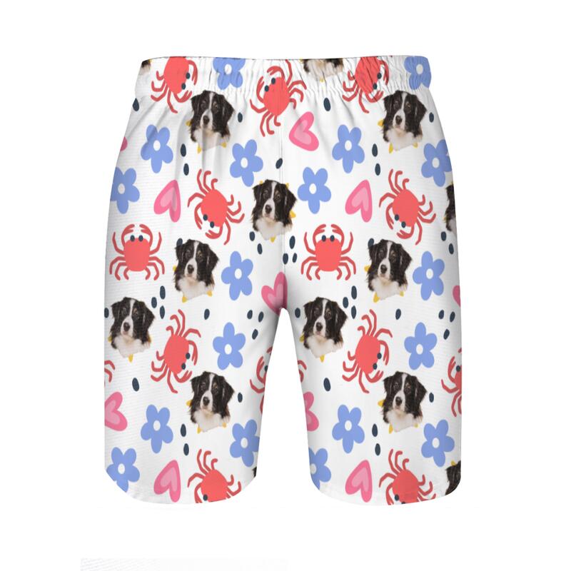 Personalized Picture Men's Beach Shorts with Pink Heart Pattern Sweet Gift for Boyfriend