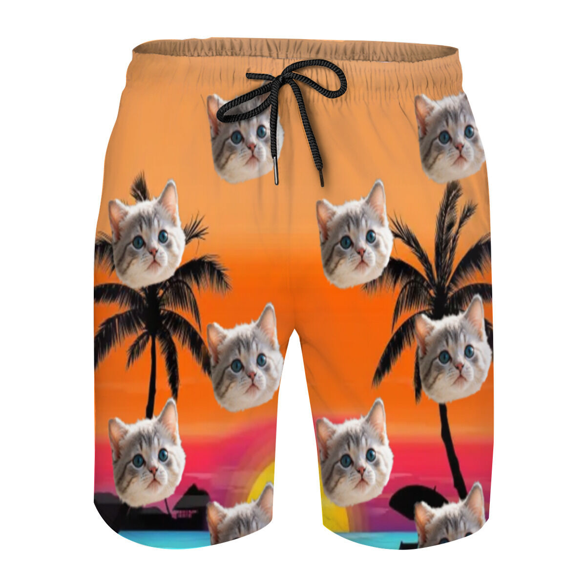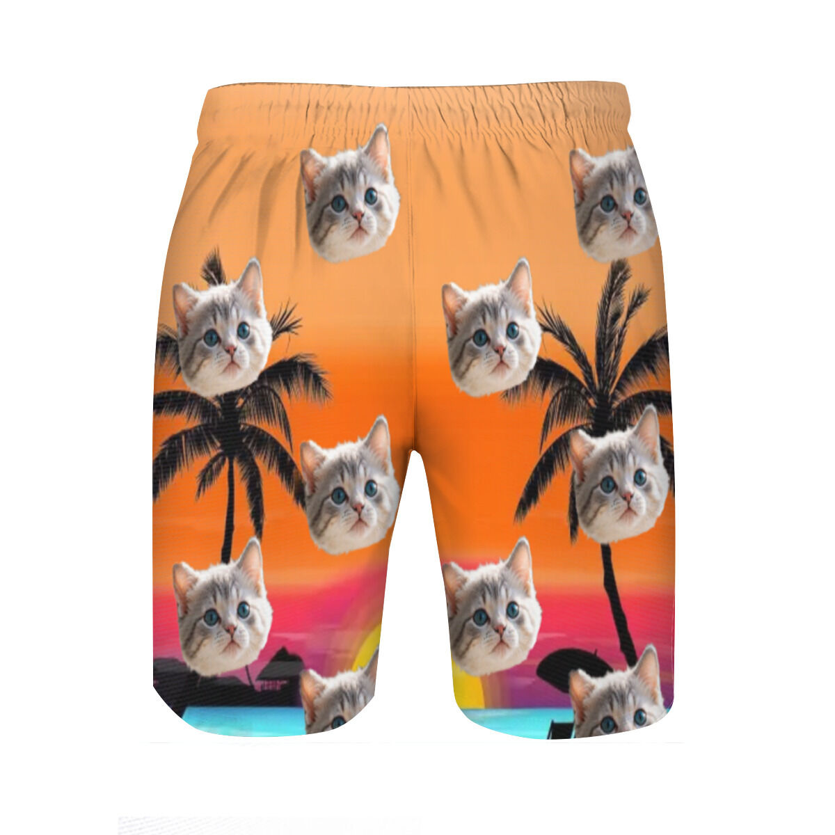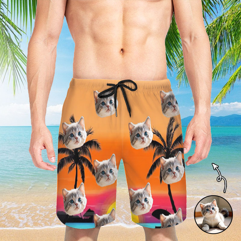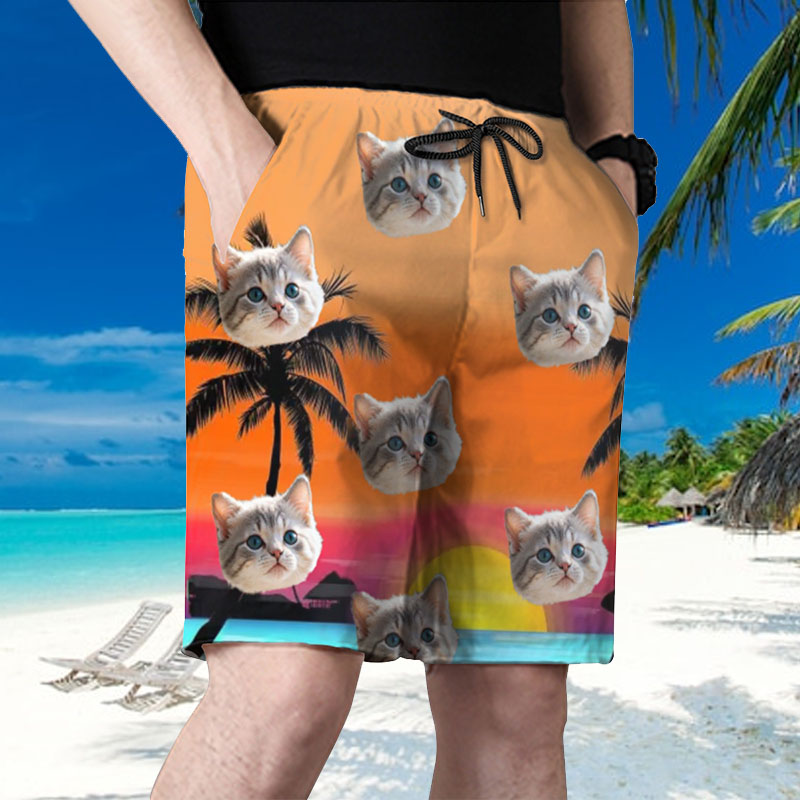 Personalized Picture Men's Beach Shorts with Seaside Sunset Pattern Minimalist Gift for Friends