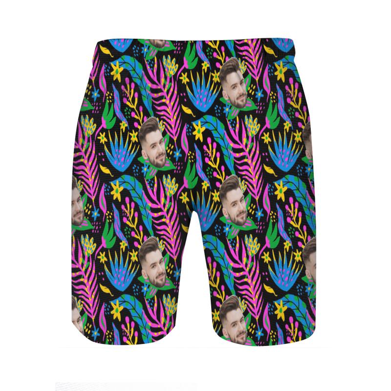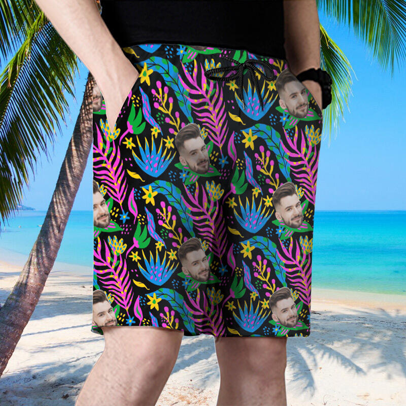 Personalized Picture Men's Beach Shorts with Seaweed Pattern Cool Gift for Papa
