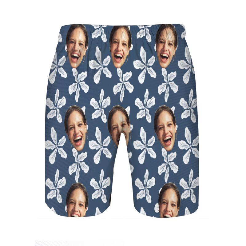 Personalized Picture Men's Beach Shorts with Simple Flowers Pattern Funny Gift for Family