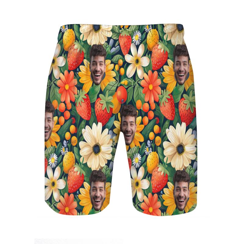 Personalized Picture Men's Beach Shorts with Strawberry Pattern Attractive Gift for Friend