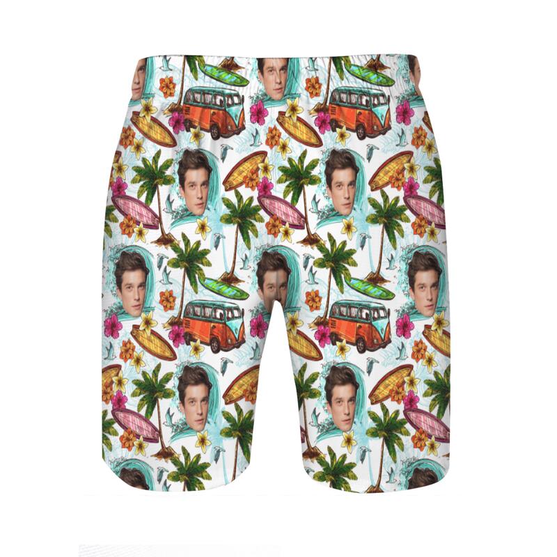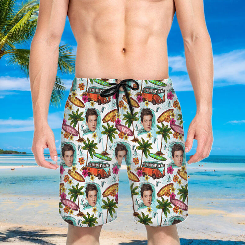 Personalized Picture Men's Beach Shorts with Tour Bus Pattern Best Gift for Friend