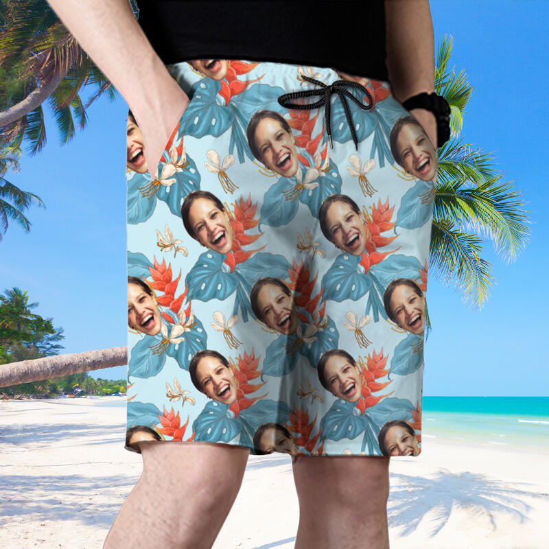 Personalized Picture Men's Beach Shorts with Unique Flowers Pattern Stylish Gift for Friend