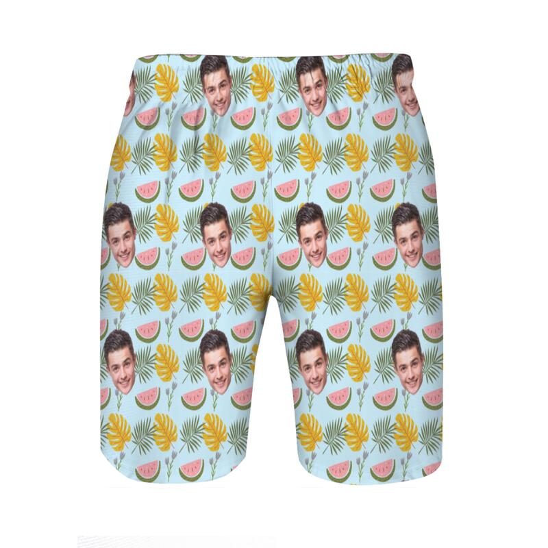 Personalized Picture Men's Beach Shorts with Watermelon Pattern Stylish Present for Boyfriend