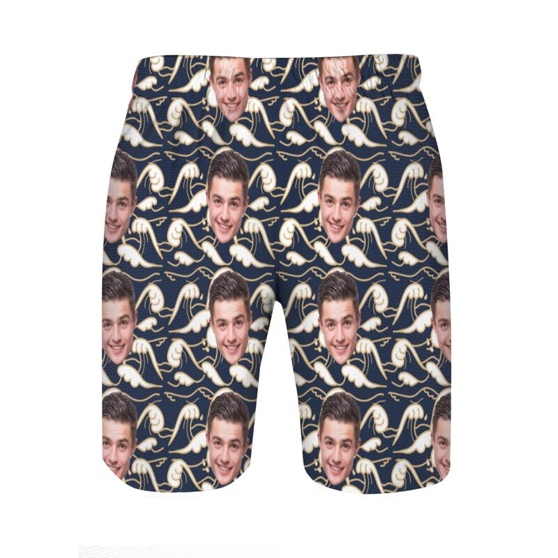 Personalized Picture Men's Beach Shorts with Waves Pattern Simple Gift for Family