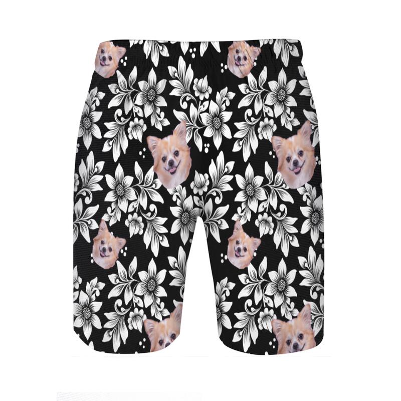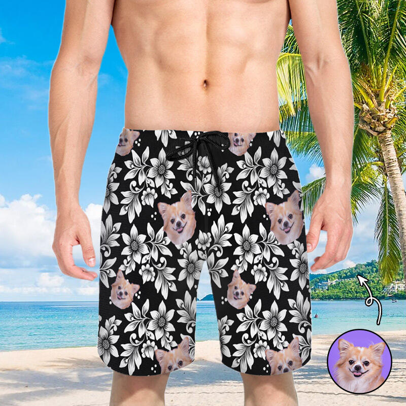 Personalized Picture Men's Beach Shorts with White Flowers Pattern Simple Gift for Family