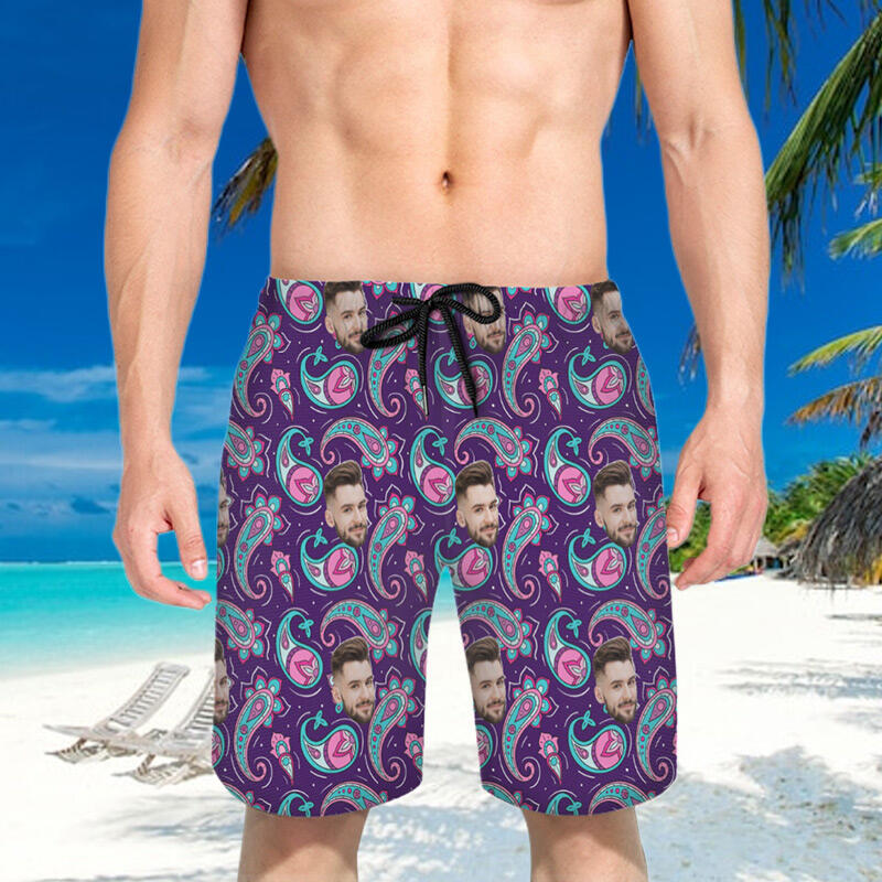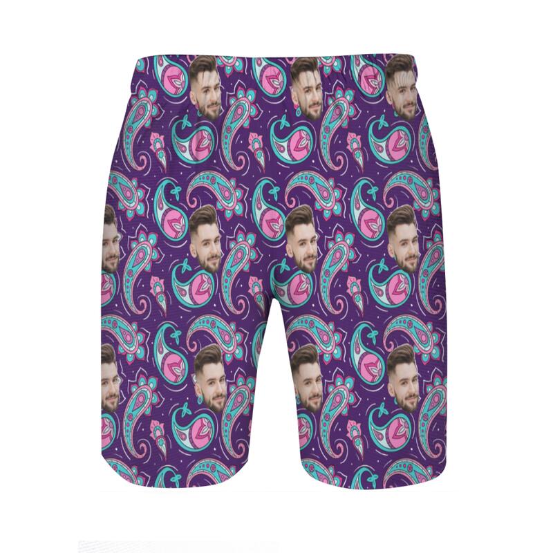Personalized Picture Men's Purple Beach Shorts Perfect Gift for Family