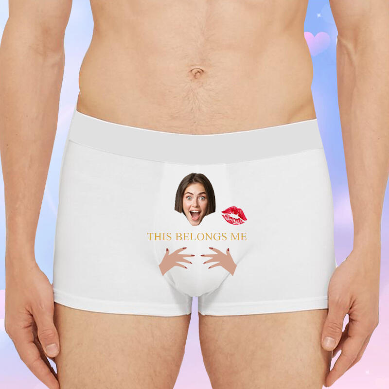 Personalized Picture Men's Underwear Boxer Briefs Creative Present for Boyfriend "This Belongs Me"