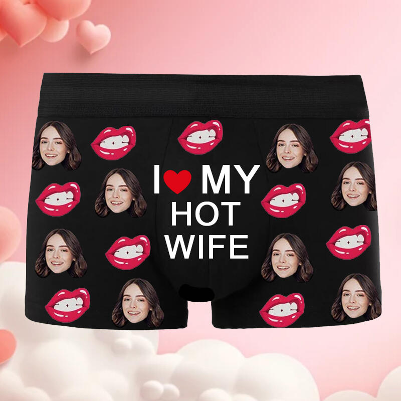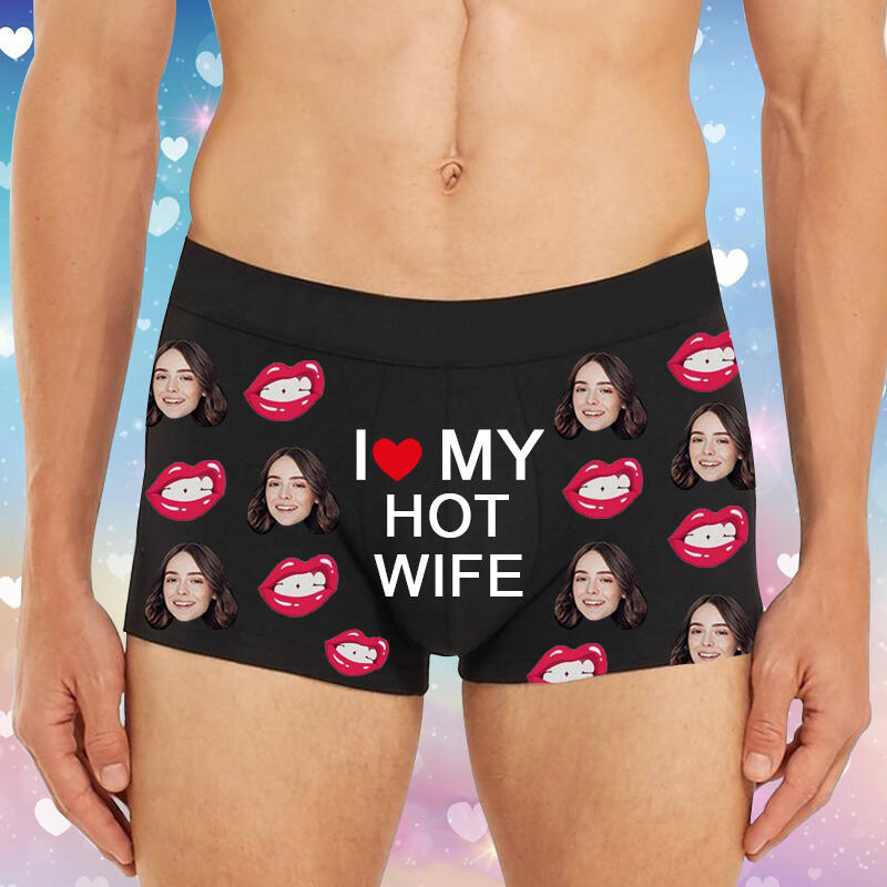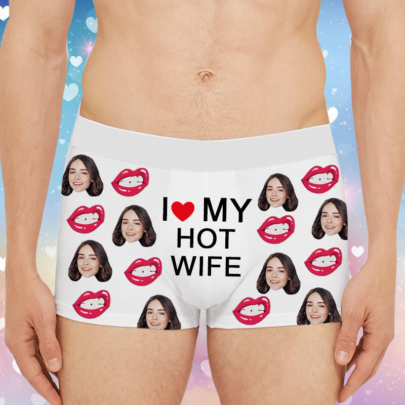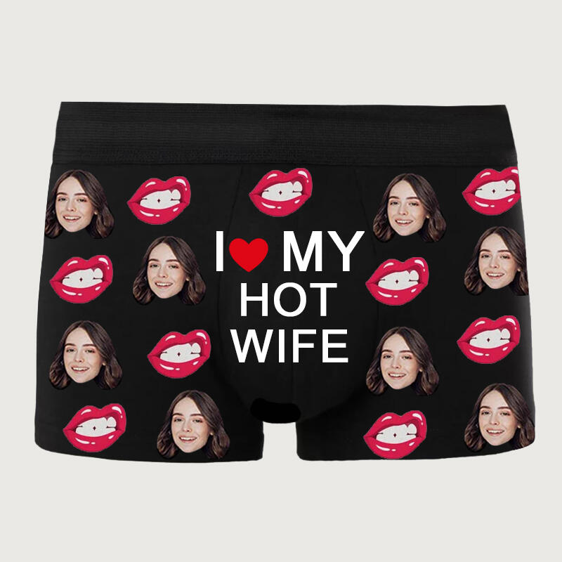 Personalized Picture Men's Underwear Boxer Briefs Funny Present for Him "I Love My Hot Wife"
