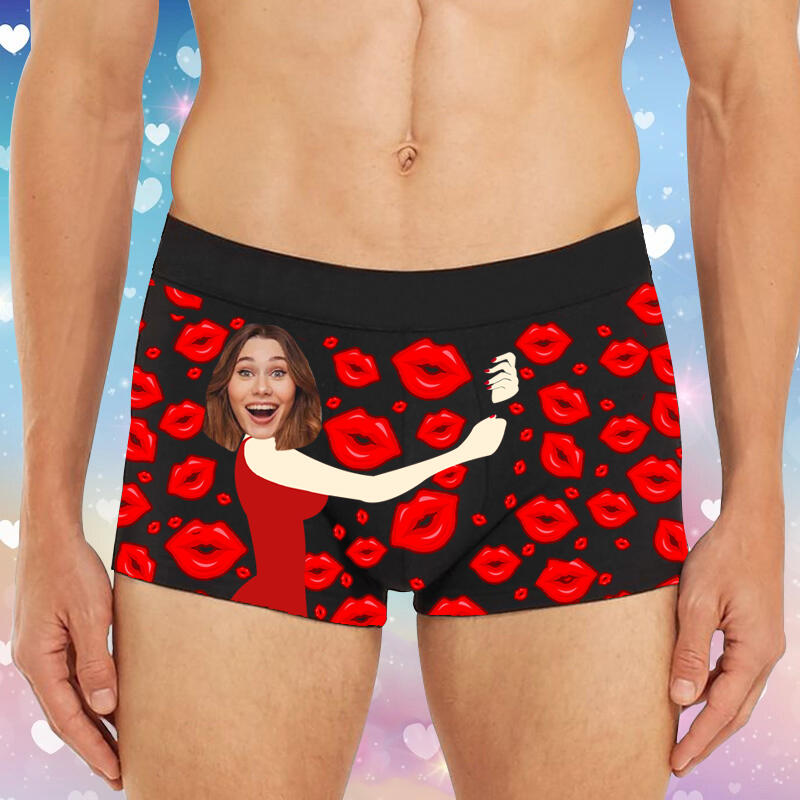 Personalized Picture Men's Underwear Boxer Briefs with Girlfriend Hugs Pattern Romantic Valentine's Gifts