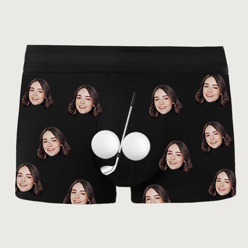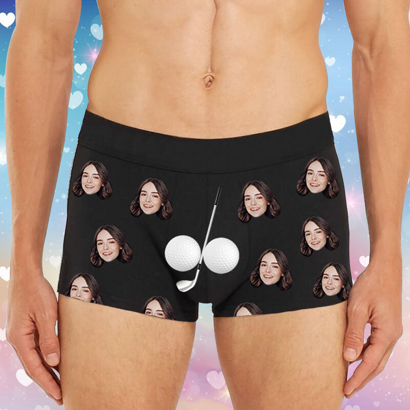 Personalized Picture Men's Underwear Boxer Briefs with Golf Pattern Simple Valentine's Day Gift