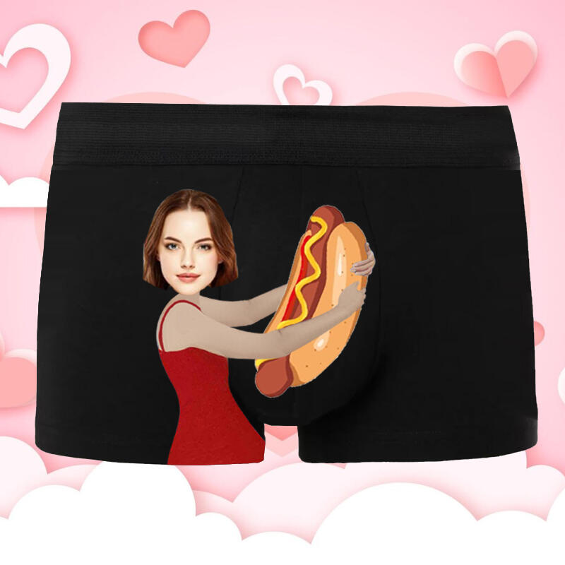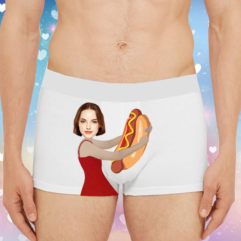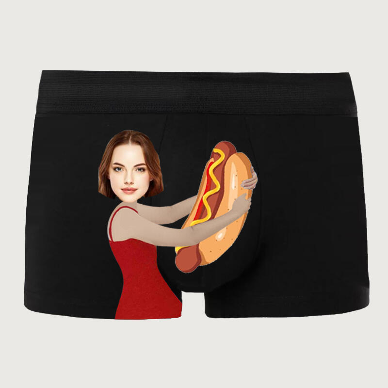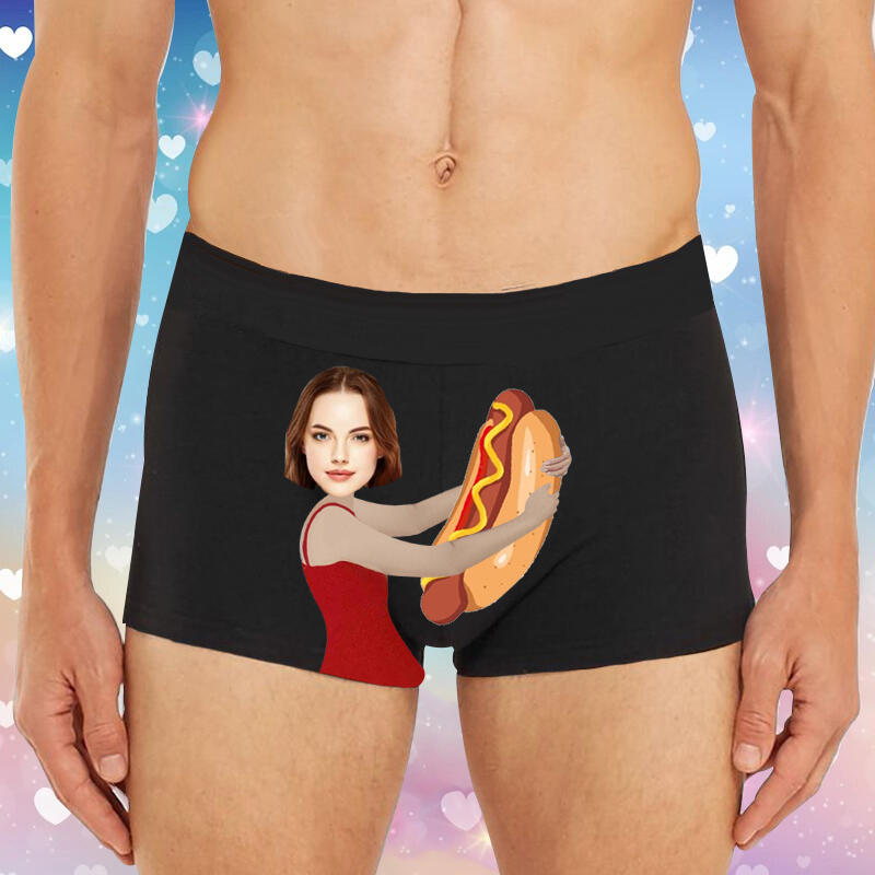 Personalized Picture Men's Underwear Boxer Briefs with Hot Dog Pattern Interesting Gift for Husband