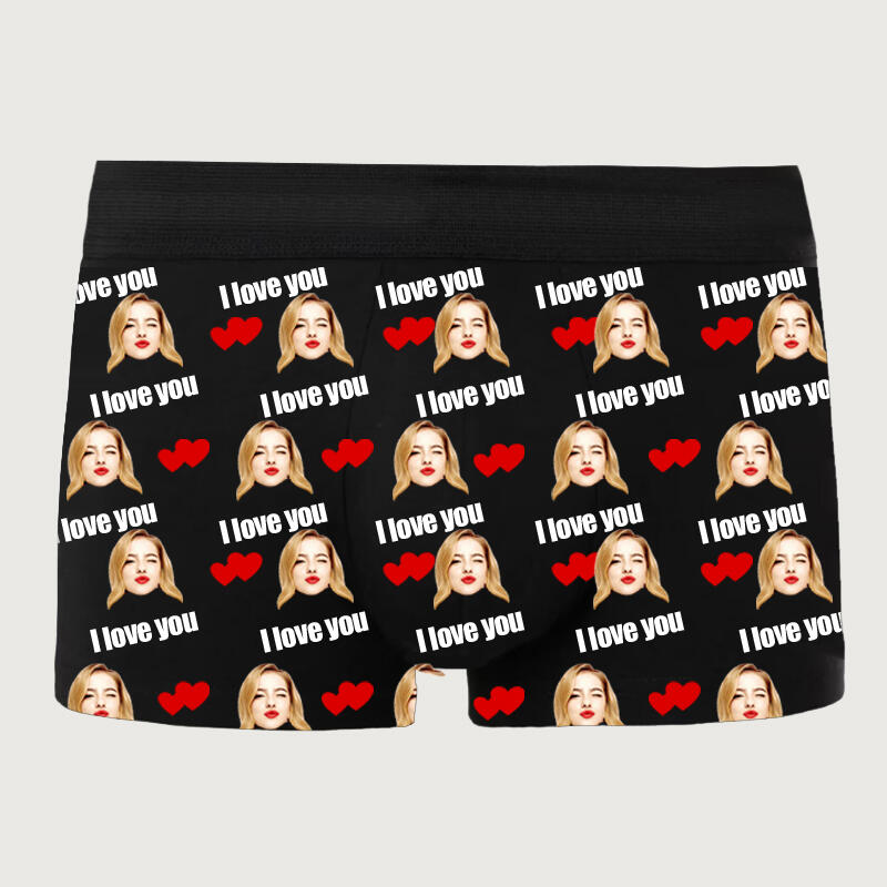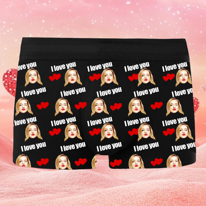 Personalized Picture Men's Underwear Boxer Briefs with Red Heart Pattern Best Gift for Favourite Boyfriend