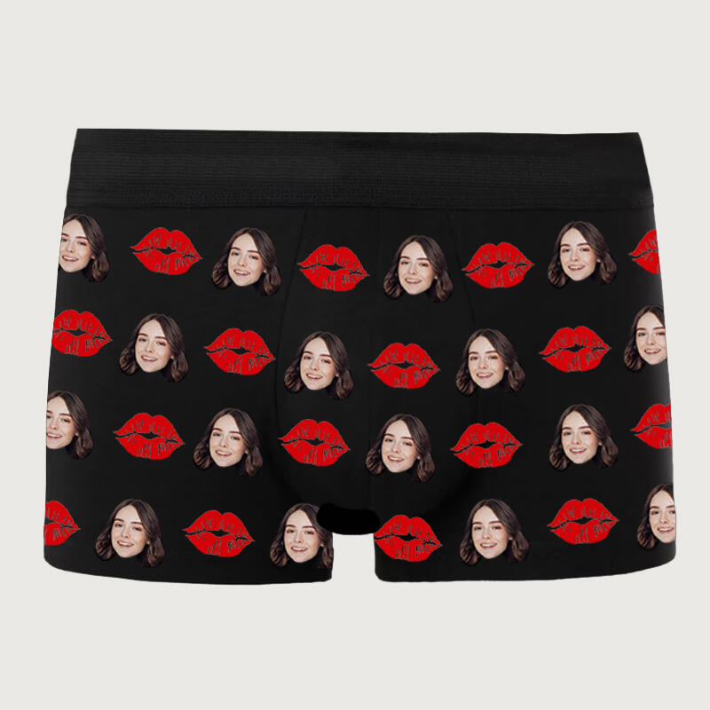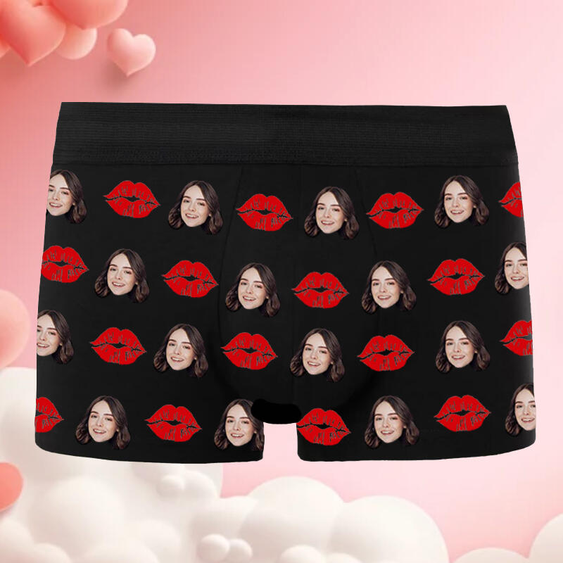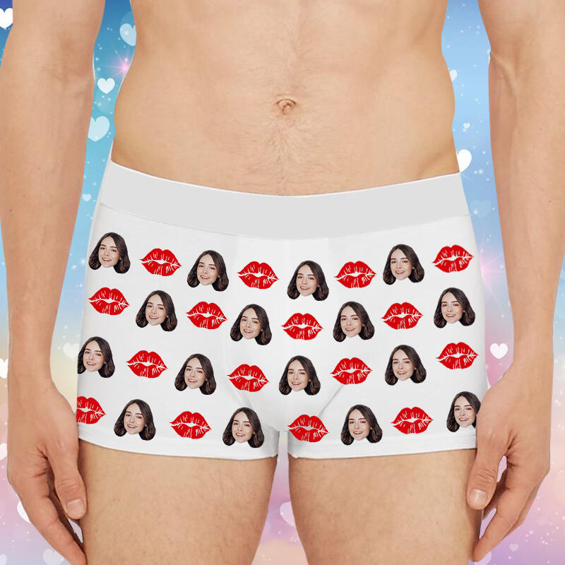 Personalized Picture Men's Underwear Boxer Briefs With Red Mouth Pattern Surprising Valentine's Day Present