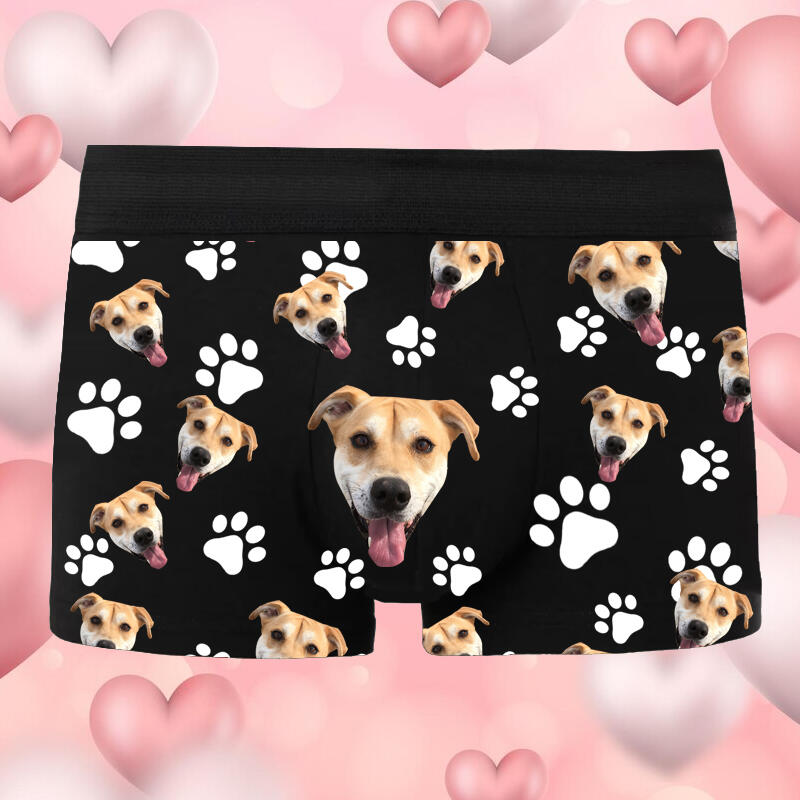 Personalized Picture Men's Underwear Boxer Briefs with White Animal Footprints Pattern Best Gift for Pet Lover