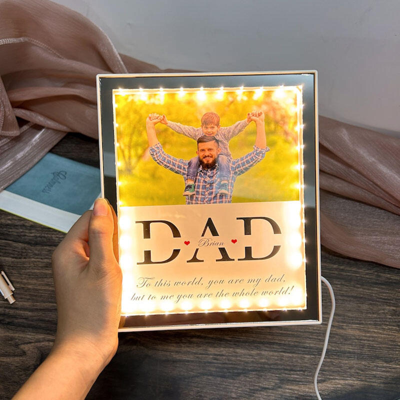 Personalized Picture Mirror Lamp with Red Heart Pattern Cute Gift for Father's Day