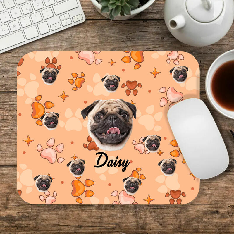 Personalized Picture Mouse Pad with Cute Paw Print Pattern Best Gift for Pet Lover