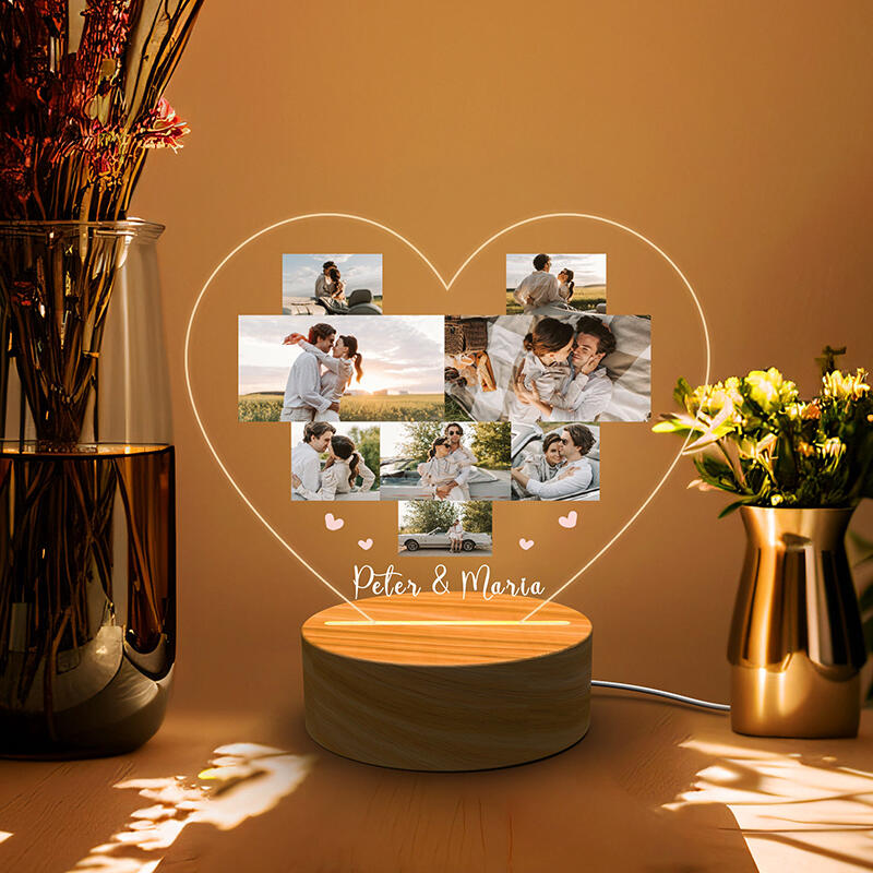 Personalized Picture Night Light Heart Shaped Pattern Romantic Gift for Valentine's Day