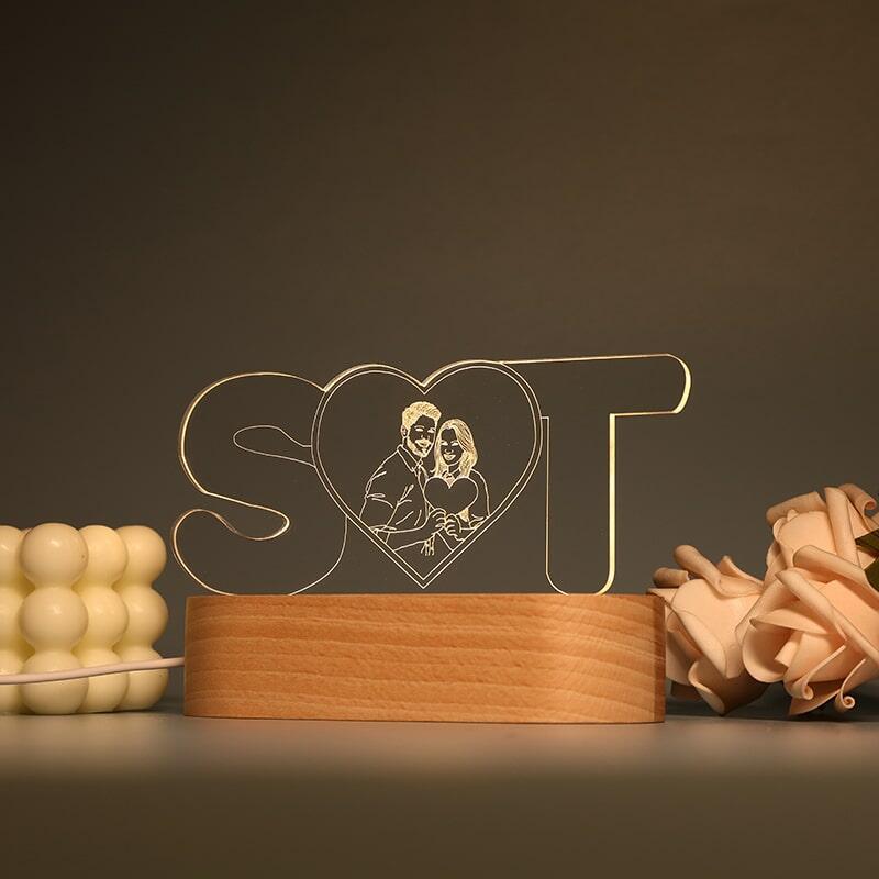 Personalized Picture Night Light with Custom Lettern Simple Gift for Couples