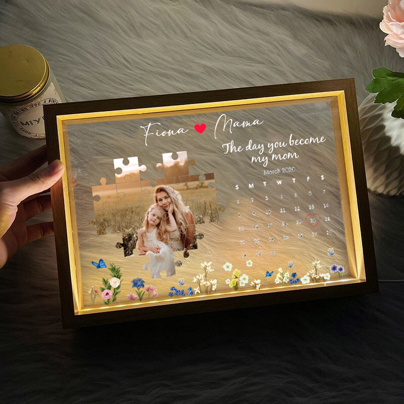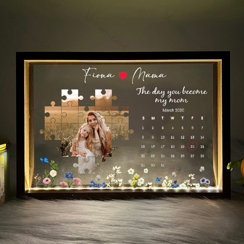Personalized Picture Night Light with Custom Name And Flowers Beautiful Gift for Mama