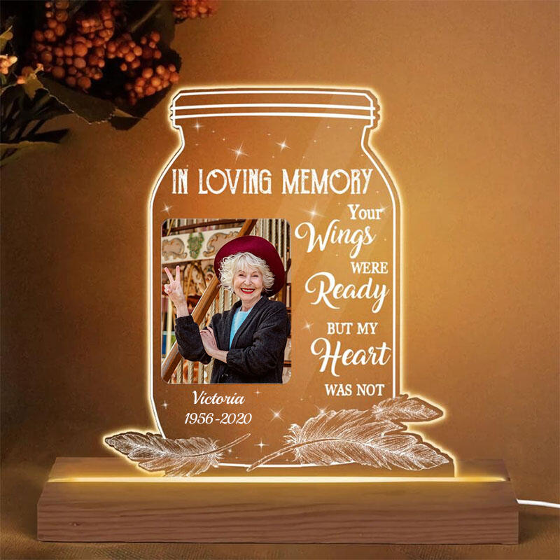 Personalized Picture Night Light with Feather Pattern Memorial Gift for Your Family