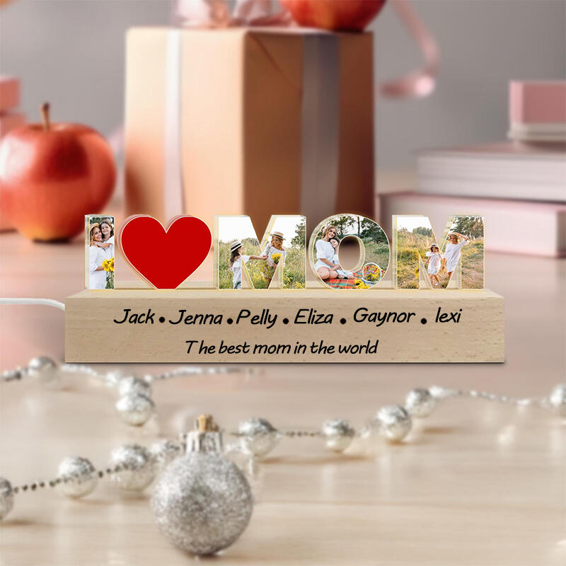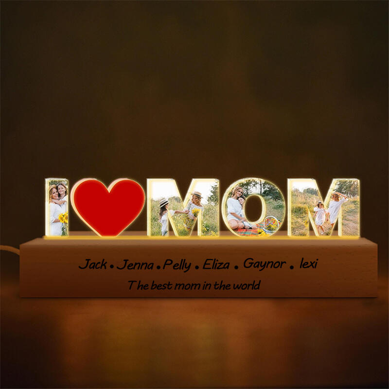 Personalized Picture Night Light with Red Heart Pattern Best Present for Your Mom