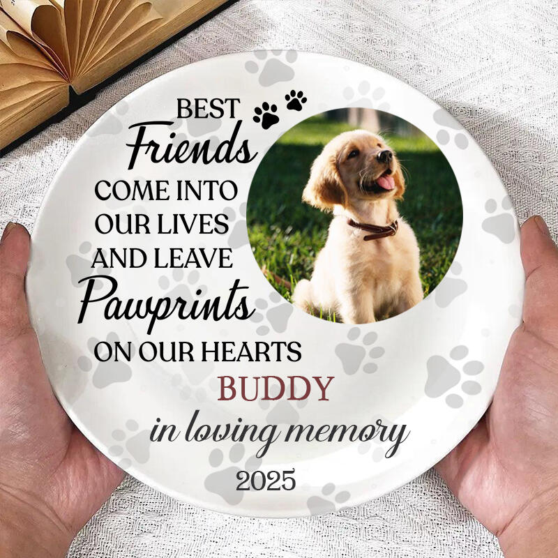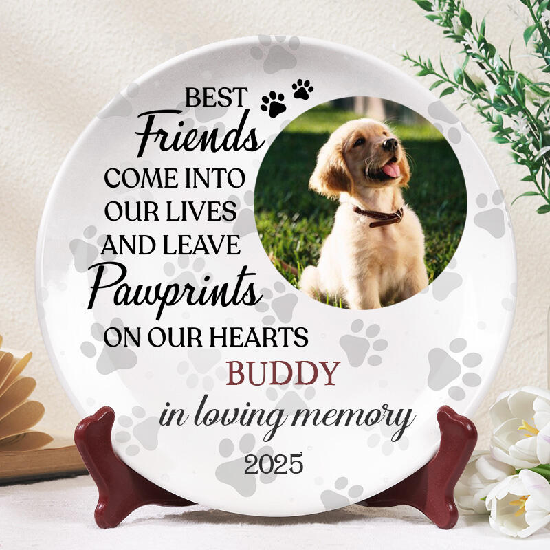 Personalized Picture Plate with PawPrints Pattern Cute Gift for Pet Lover